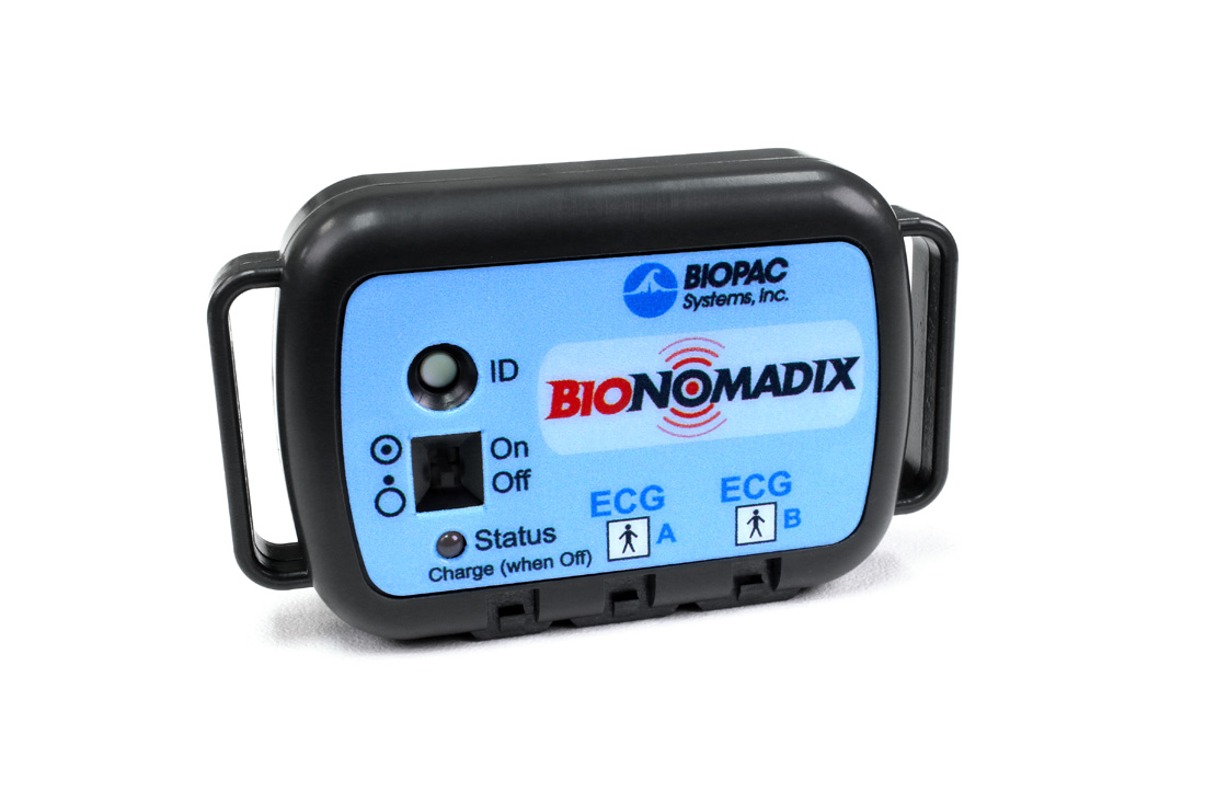 The Dual Wireless ECG BioNomadix transmitter is specifically designed to measure Electrocardiogram (ECG) data on one or both channels. Collect data from just LEAD I and LEAD II to generate LEAD III and all the augmented leads (aVR, aVL and aVF).