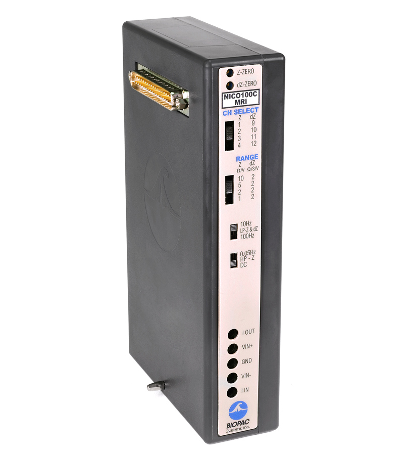The NICO100C-MRI Impedance Cardiography (ICG) Noninvasive Cardiac Output Module for Magnetic Resonance Imaging records specific parameters associated with cardiac output measurements. The NICO100C-MRI simultaneously measures impedance magnitude (Zo; labeled âZâ) and derivative (dZ/dt; labeled âDZâ) and incorporates special features to help improve measurements during EPI or other scanning sequence in fMRI or MRI. Features include optimized filtering and slew rate limiting for the Zo and dZ/dt signals.