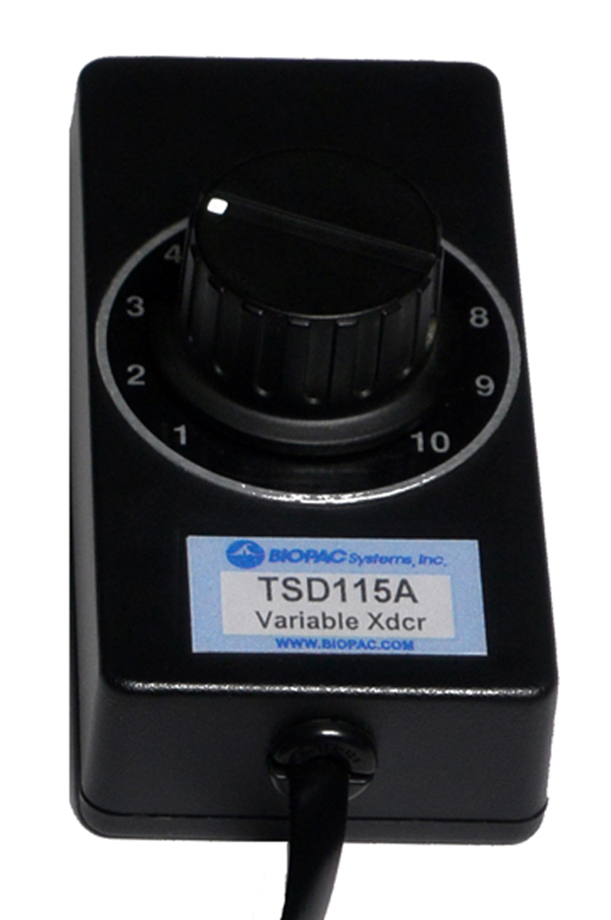 TSD115 Series Variable Assessment Transducers allow participants to report subjective assessments with values from 1 to 10 to correlate subjective reporting with physiological measures. Multiple assessment transducers can be used simultaneously allowing several people to answer the same question or otherwise respond to stimuli.
