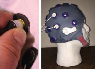 - Insert the electrode into the rubber grommets on the cap, paying attention to the “CH” numbers shown on the electrode leads (these numbers will be referenced for assigning the channels in the AcqKnowledge software.