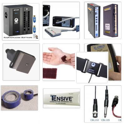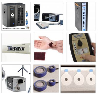 MP200 System + EMG amp & 8 mm reusable electrodes + Camera System